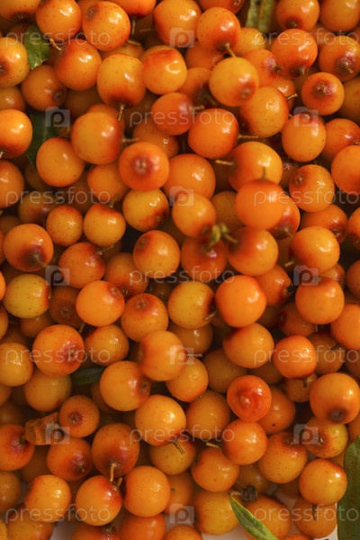 Оранжевые ягоды облепихи. Гиппофаи. Фон ягод облепихи