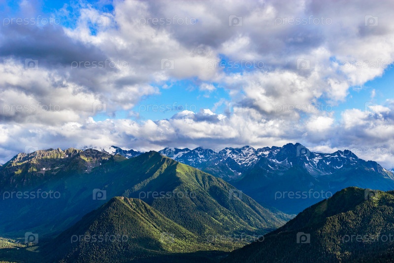 Кавказские горы и облачное небо в летний день