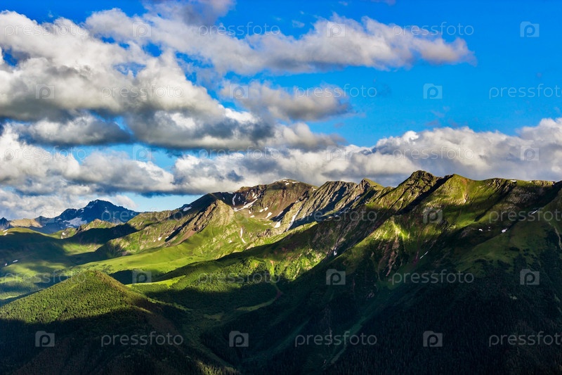 Кавказские горы и облачное небо в летний день