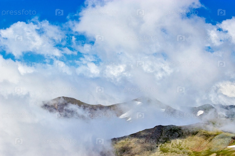 Кавказские горы и облачное небо в летний день