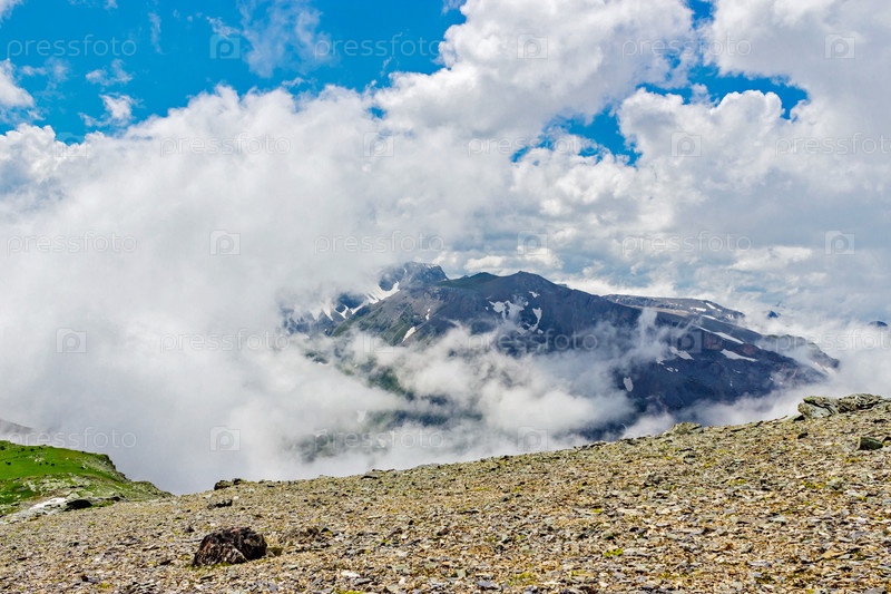 Кавказские горы и облачное небо в летний день