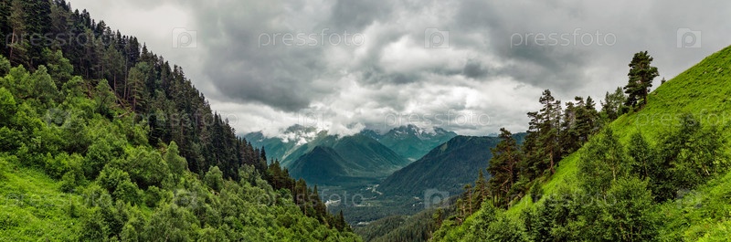 Кавказские горы и облачное небо в летний день