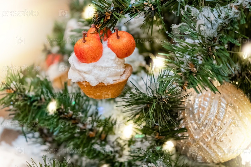 Ветка рождественской елки, украшенная орнаментом из вишневого пирога