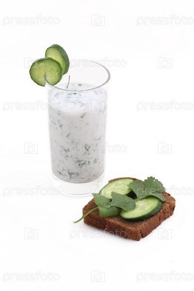 Коктейль из кефира с огурцом на белом фоне