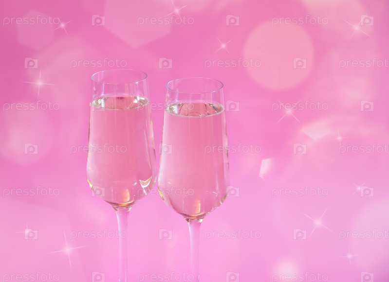 Два бокала шампанского на розовом фоне