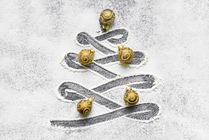 Кривая в форме рождественской елки на поверхности муки, украшенная безделушками