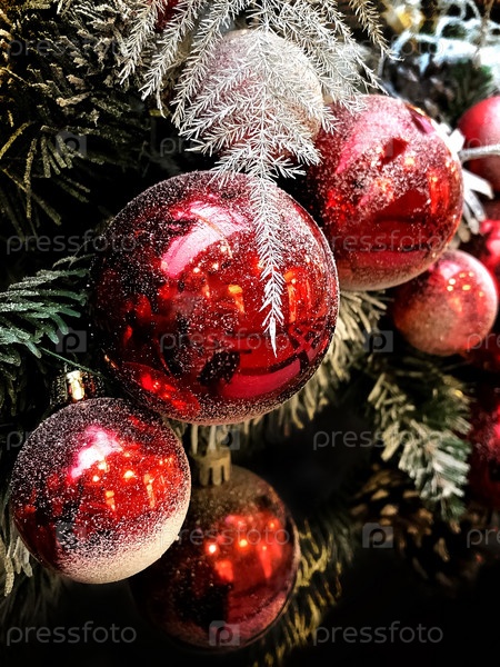 Рождественская декоративная гирлянда с красными шарами и еловыми ветками