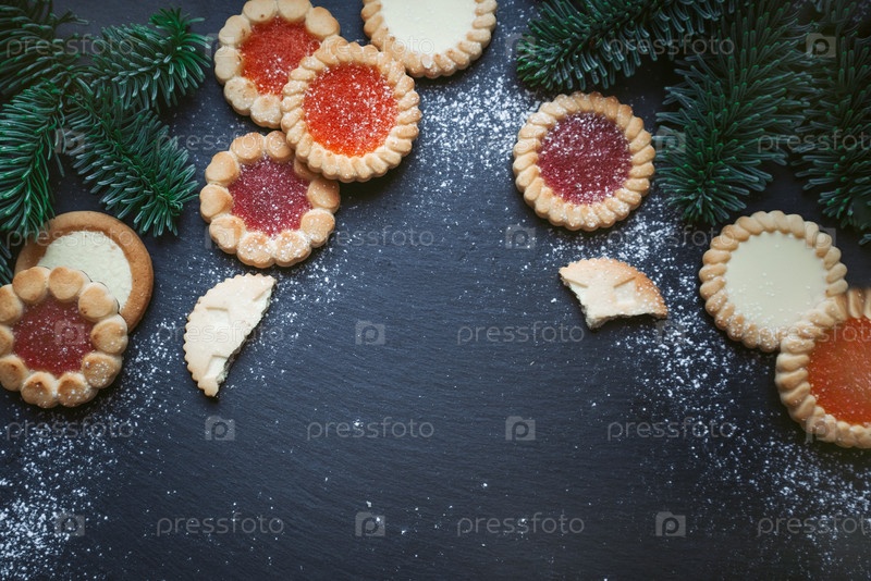 Рождественское праздничное печенье, вид сверху, плоская планировка