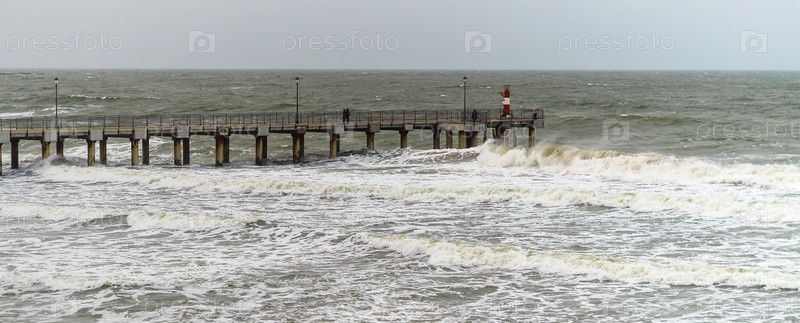 Приливы и штормы на море. Морской пирс. Волны на Балтийском море. Пустынный берег моря