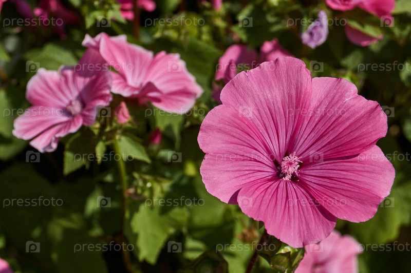 Лаватера цветет на лужайке в саду.Последние цветки лаватары перед наступлением холода