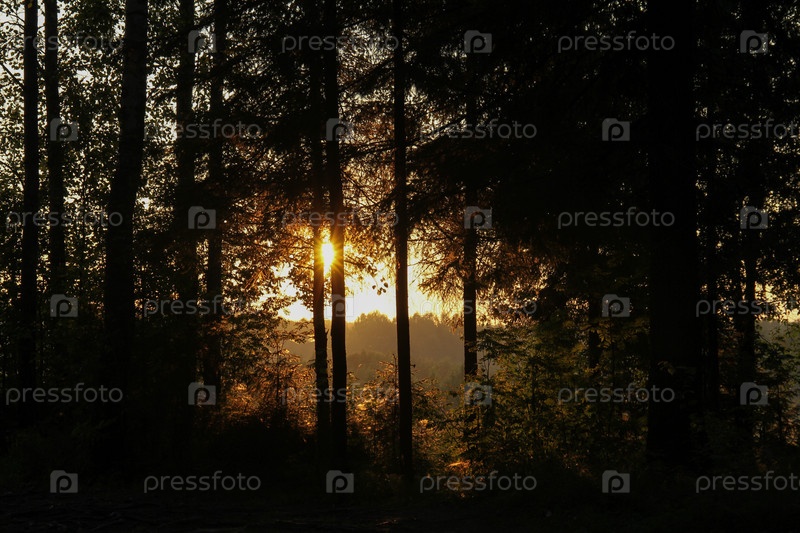 Закат в летнем лесу