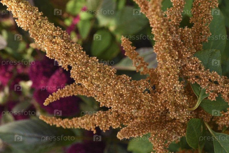 Желтые цветы амаранта в летнем зеленом саду. Амарант. Летние цветы