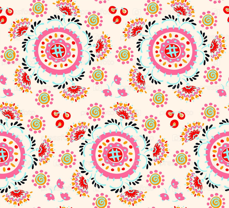 Бесшовный узор с фантазийными цветами, этнический вращающийся повторяющийся дизайн ткани и плитки, натуральные обои, иллюстрация завитка цветочного декора. Пейсли печать рисованной элементы.Украинский узор