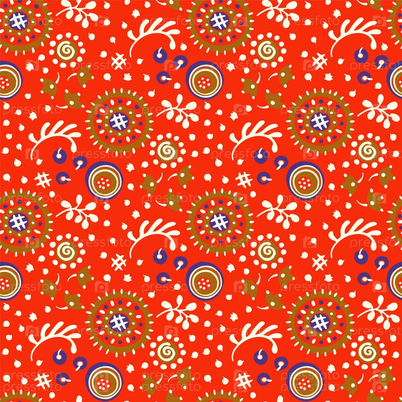Бесшовный узор с фантазийными цветами, этнический вращающийся повторяющийся дизайн ткани и плитки, натуральные обои, иллюстрация завитка цветочного декора. Пейсли печать рисованной элементы.Украинский узор