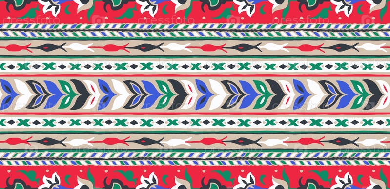 Геометрический фольклорный орнамент икат. Племенная этническая векторная текстура. Бесшовный полосатый узор в стиле ацтеков. Рисунок племенной вышивки. Индийский, скандинавский, цыганский, мексиканский, народный узор