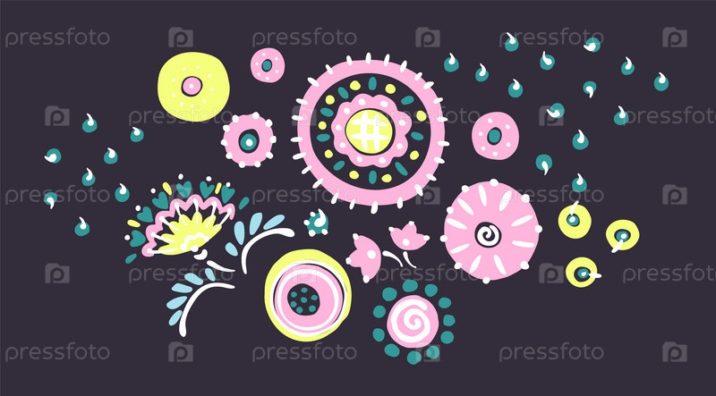 Набор этнических элементов. Бордюр представляет собой полосу с цветами, листьями, ветками, вензелями. Народная вышивка. Славянский, украинский, русский мотив. Хохлома, матрешка, дымковская игрушка. Мексиканский, индийский, цыганский ковер. Вязаное кружево
