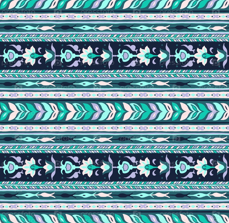 Геометрический фольклорный орнамент икат. Племенная этническая векторная текстура. Бесшовный полосатый узор в стиле ацтеков. Рисунок племенной вышивки. Индийский, скандинавский, цыганский, мексиканский, народный узор