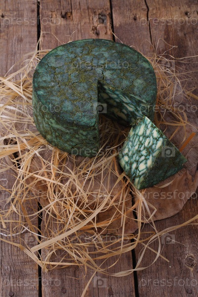 Сыр дерби с шалфеем на деревянном фоне