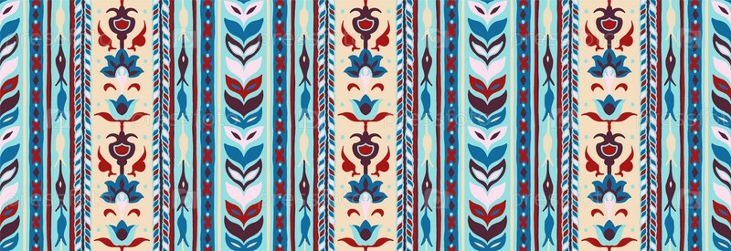 Геометрический дамасский орнамент. Икат границы. Этническая вышивка с листьями и монограммами. Племенная векторная текстура. Бесшовный народный узор в ацтекском стиле. Индийский, скандинавский, цыганский, мексиканский, африканский ковер