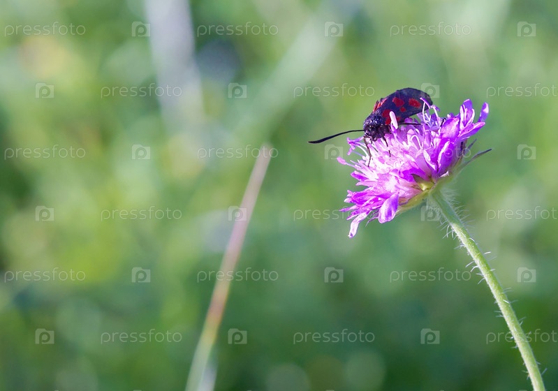 Открытка лето. Луговой цветок в траве. Жук на полевом цветке