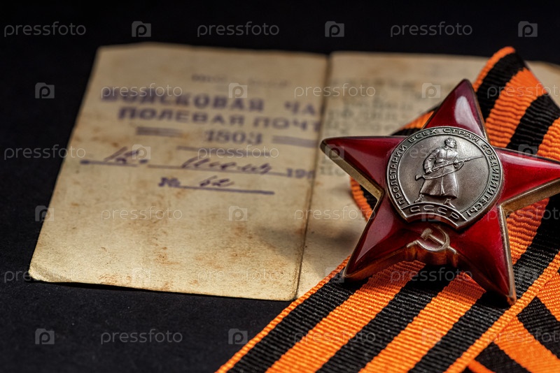 Орден Красной Звезды на георгиевской ленте. 9 МАЯ поздравительная открытка