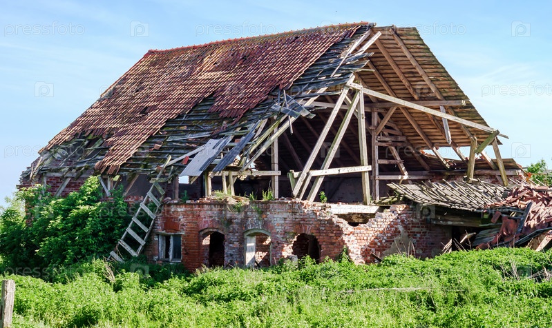 Старый разрушенный дом. Дом из красного кирпича