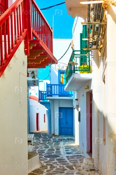 Старая улица в городе Миконос