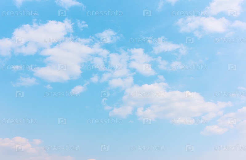 Пастельно-голубое небо с белыми облаками