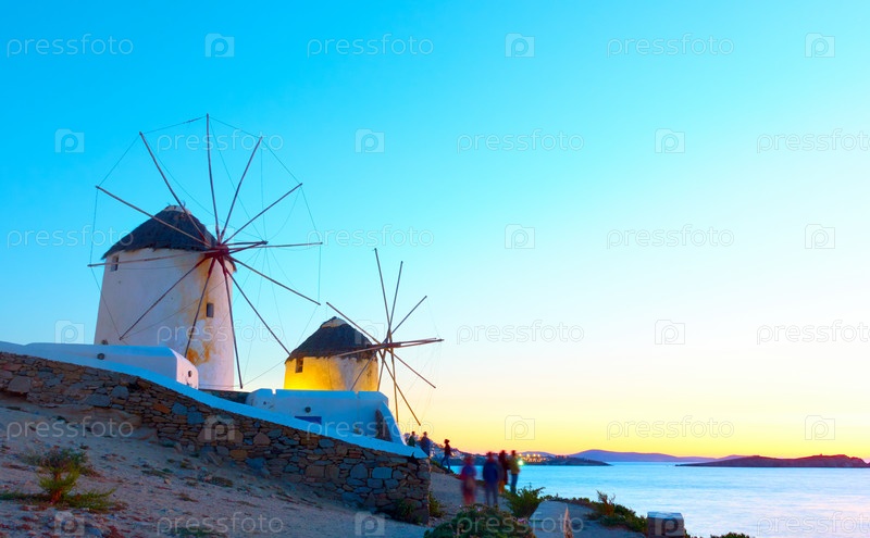 Ветряные мельницы Миконоса на закате