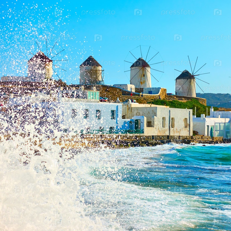 Ветряные мельницы Миконоса на побережье Эгейского моря