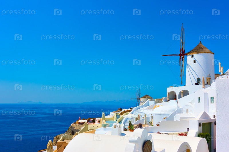 Дома и ветряные мельницы на Санторини
