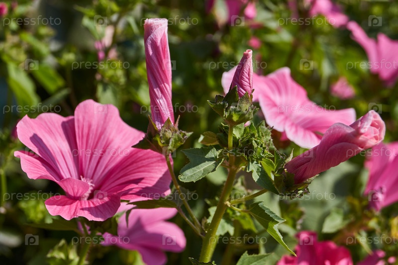 Лаватера цветет на лужайке в саду.Последние цветки лаватары перед наступлением холода