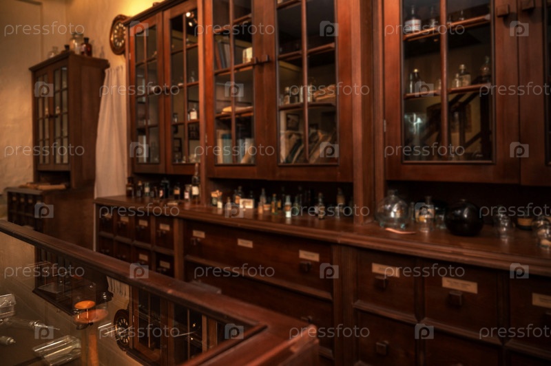 Винтажные лекарства в старой аптеке