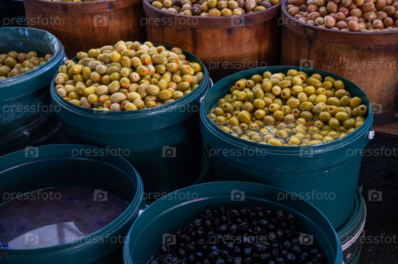 Торговля различными оливками на турецком рынке