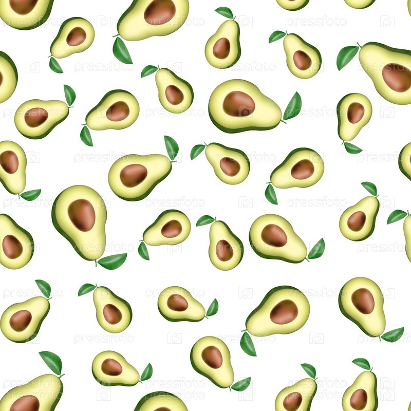 Бесшовный узор из авокадо для текстиля, гравюр, одежды, скрапбукинга, баннера. Спелые овощи фрукты на белом и прозрачном фоне. Здоровое питание, можно использовать для кухни
