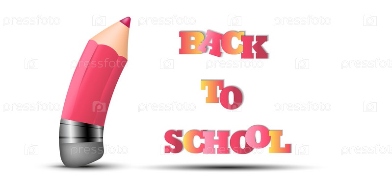 Баннер, концепция возвращения в школу, день знаний, 1 сентября, школьный карандаш, разноцветные яркие канцтовары. На белом фоне с тенью и копией пространства
