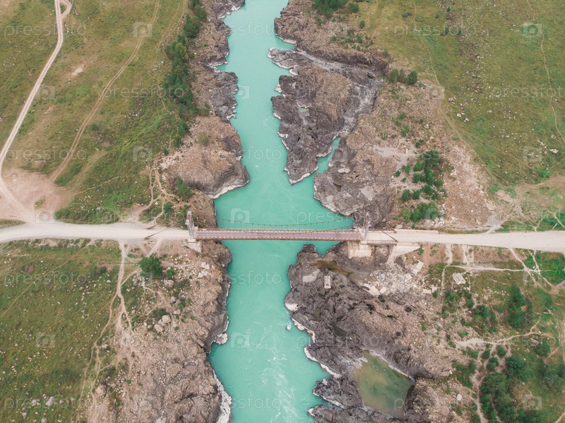 Пороги реки Катунь в летний день у моста Ороктой