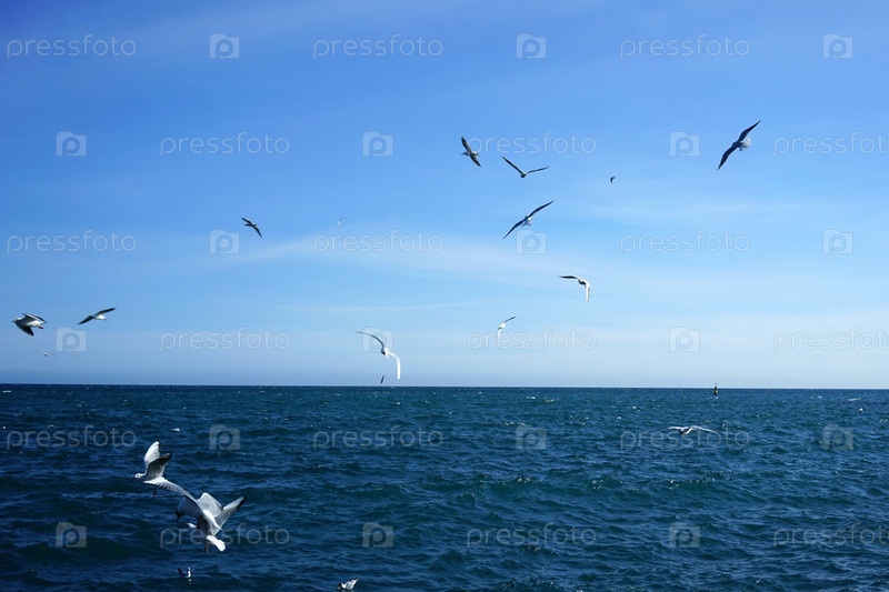 Морской пейзаж с чайками на фоне моря