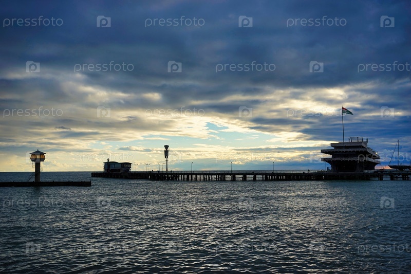 Морской пейзаж с видом на причал морского вокзала в Сухуме. Абхазия