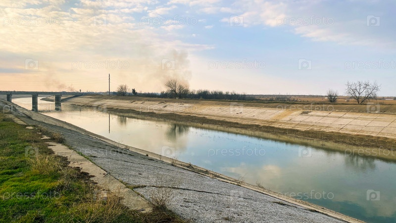 Северо-Крымский канал весной в Джанкойском районе. Крым, Россия