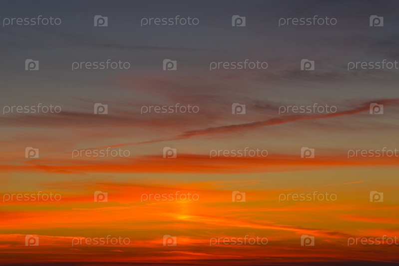 Фон с ярким оранжево-красным закатом на синем небе