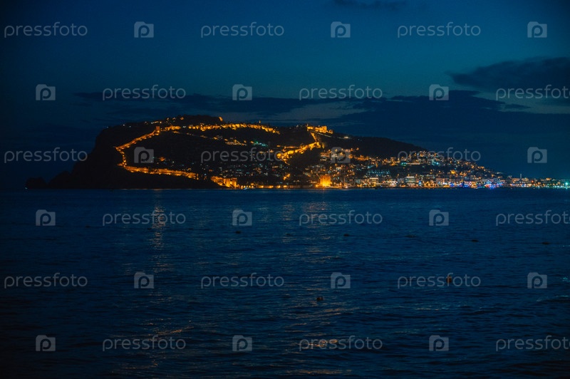 Красивая ночная сцена на пляже Аланьи