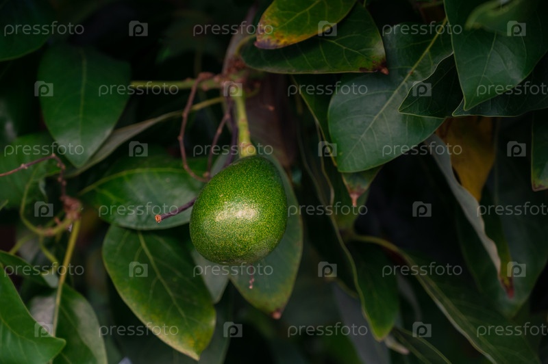 Плоды авокадо на дереве авокадо в саду. Производство авокадо или концепция сельского хозяйства