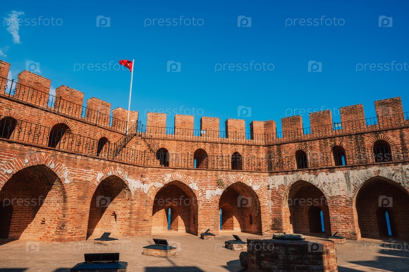 Верхняя часть исторической Красной башни - Красная Башня, в замке Аланьи.Красная башня является символом города Алания и известным туристическим местом Турции (Turkiye)