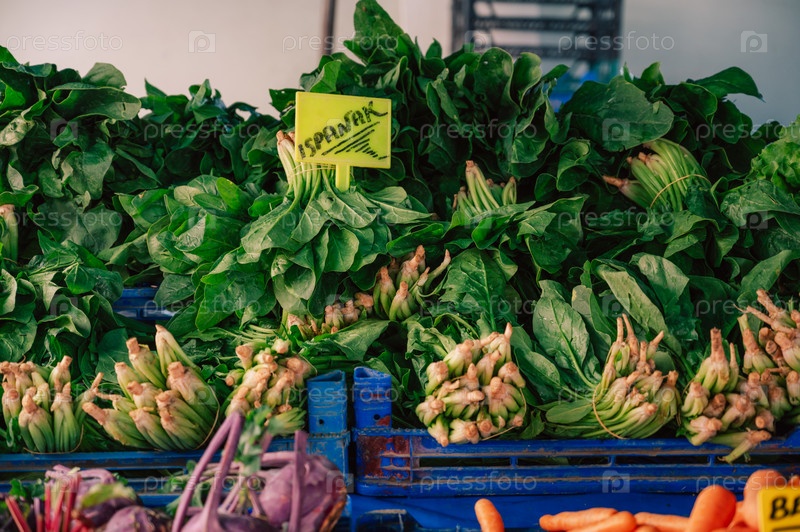 Торговля свежим шпинатом на турецком рынке