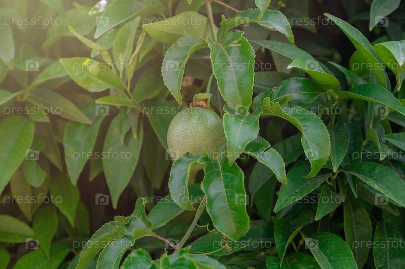 Маракуйя маракуйя растет на дереве в саду, красота летнего дня