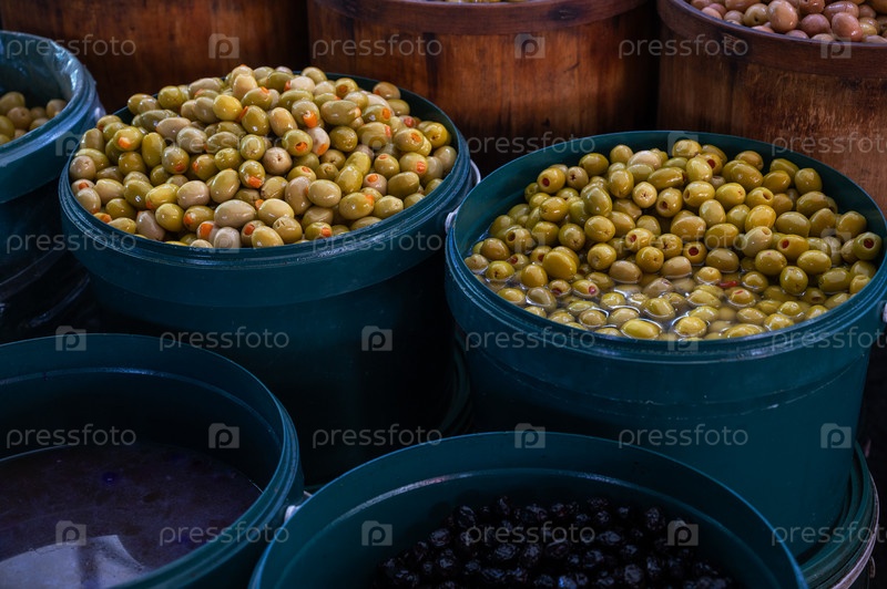 Торговля различными оливками на турецком рынке
