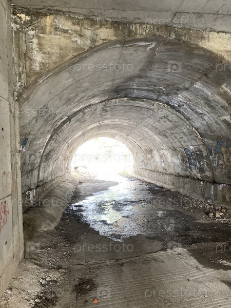 Старый туннель под дорогой, на другом конце видно солнце