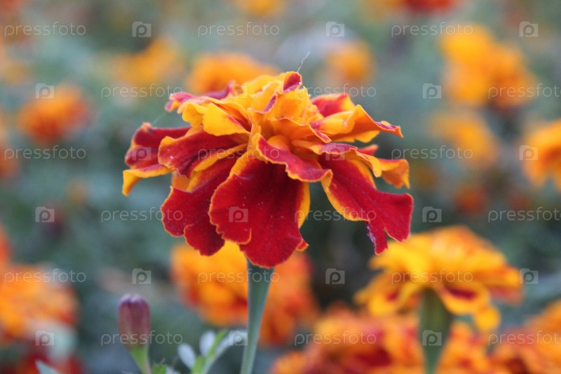 Оранжево-жёлтый цветок календулы крупным планом. Выращивание цветов. Цветная наука осень лето ароматные домашние цвета для флористов