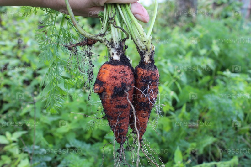 Рука держит морковь. Выращивание овощей. Как растет морковь. Сельскохозяйственные витамины, полевое питание, сезонные овощи, продукты